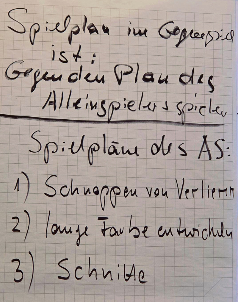 Bei unserem Fortbildungskurs am 24.Februar 2025 hat Thomas Schmitt versucht, uns die Denkweise im Gegenspiel zu vermitteln und daraus dann wichtige Schlüsse für unser Spiel zu gewinnen. Die gewonnen Erkenntnisse waren für viele von uns sehr aufschlussreich. Jetzt heißt es, das Gehörte und Geübte auch im Turnier umsetzen.