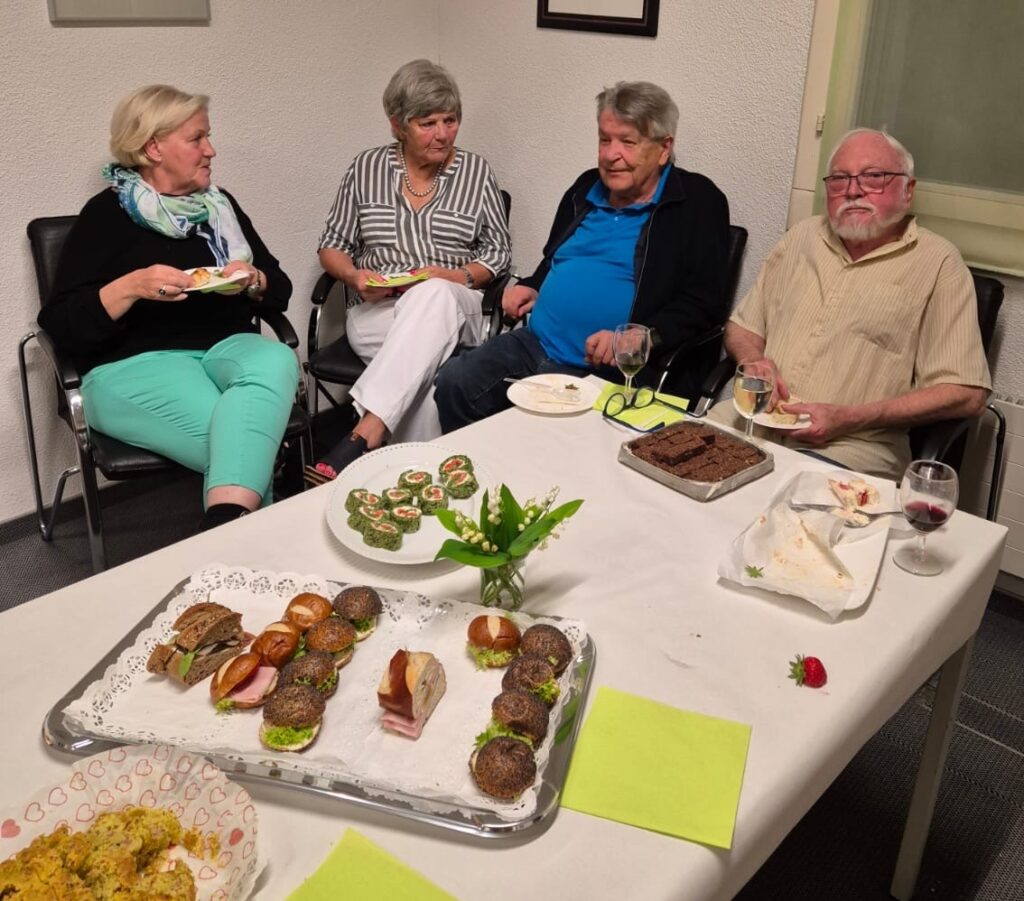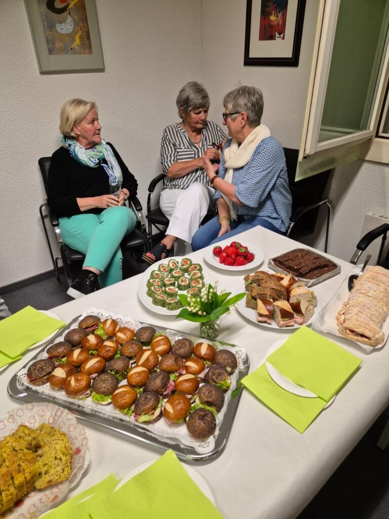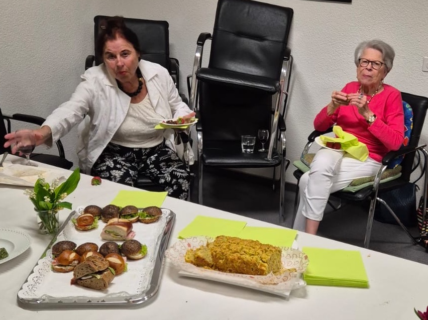 Im Clubhaus war ein Apero vorbreitet, wie man ihn sich nur träumen kann. An einem reichhaltigen Buffet mit vielen salzigen und süßen Leckereien konnten wir unseren Hunger jetzt stillen und bei einem guten Schluck viele Gespräche führen.